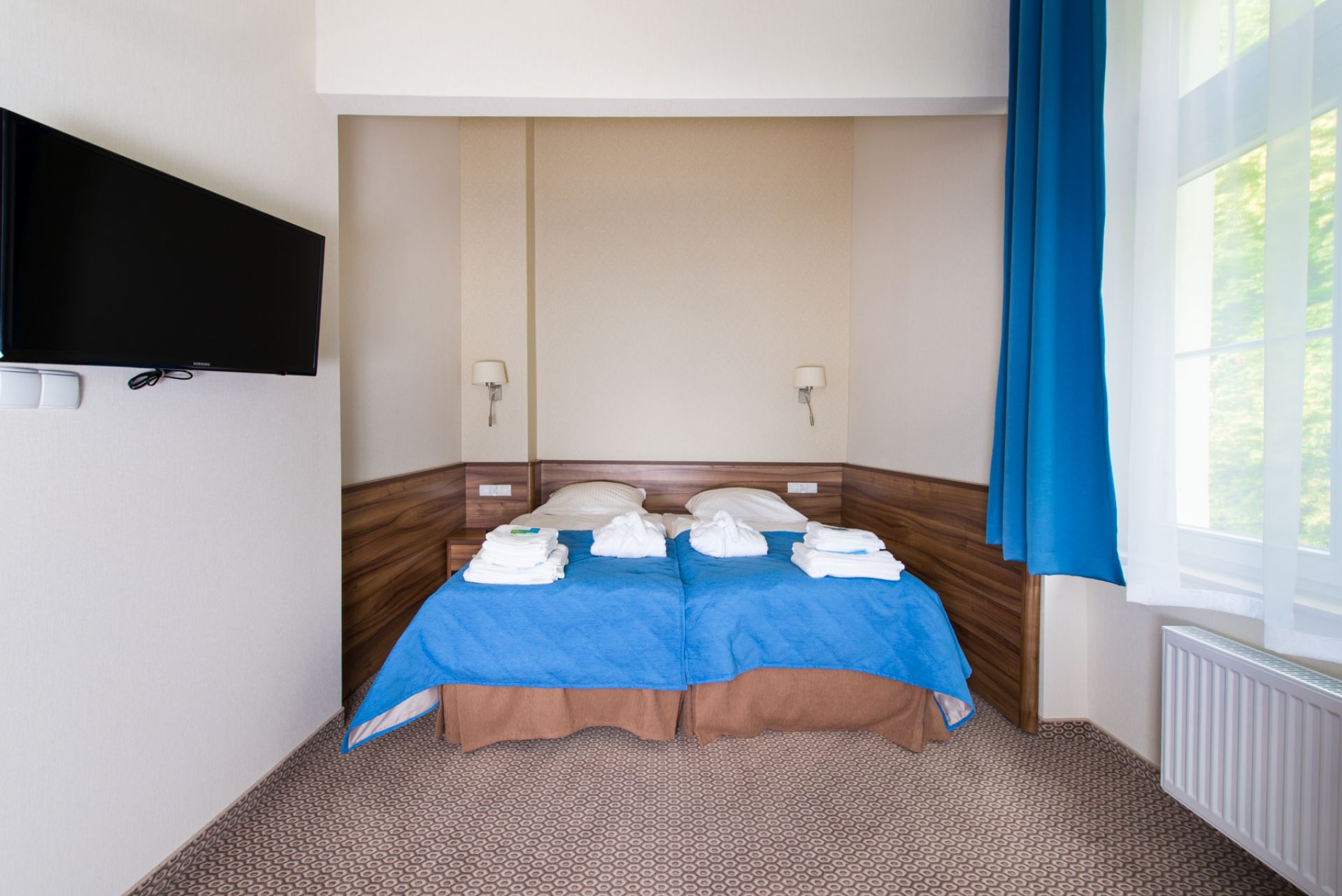 Budynek jednopiętrowy położony w centrum uzdrowiska w Parku Zdrojowym. We wszystkich pokojach w łazienkach do kąpieli wykorzystujemy wodę termalną.