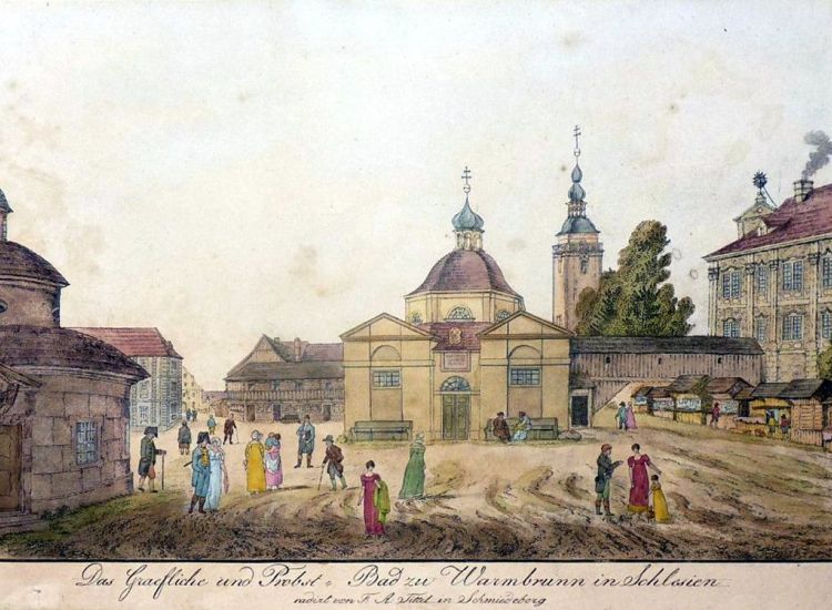 Objąwszy władzę nad Śląskiem, król pruski Fryderyk II udzielił zgody na budowę świątyni ewangelickiej w Cieplicach. Pierwszym pastorem został Adam Gotfryd Thebesius. W Cieplicach znajdowało zatrudnienie 40 szlifierzy szkła, a latem ich liczba znacznie się zwiększała. Mogli oni wówczas sprzedawać swe wyroby licznym gościom kuracyjnym. |
