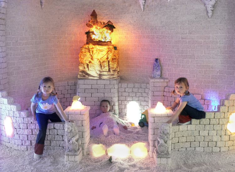 Die Salz- und Jodhöhlen GALOS ® laden zu 45-minütigen Behandlungen mit Einbeziehung von Musiktherapie, Farbentherapie und Reflextherapie. Für Erwachsene haben wir bequeme Liegestühle, für Kinder zum Spielen „Sandkästen“ mit Salz und Spielsachen, und zum Hören – Meeresgeräusche, besänftigender Vogelgesang, Bachplätschern, Bergbach, vier Jahreszeiten. In die Höhlen kommen wir in Socken oder im Schuhschutz, den es in der Rezeption zu kaufen gibt. Bequeme, lockere Kleidung steigert die Entspannung, es wäre auch empfehlenswert, vor der Behandlung keine schweren Speisen zu essen. Um einen Heilungseffekt zu erzielen sollte man sich mehreren, am besten 10 Behandlungen unterziehen, was einem einmonatigen Aufenthalt am Meer entspricht.