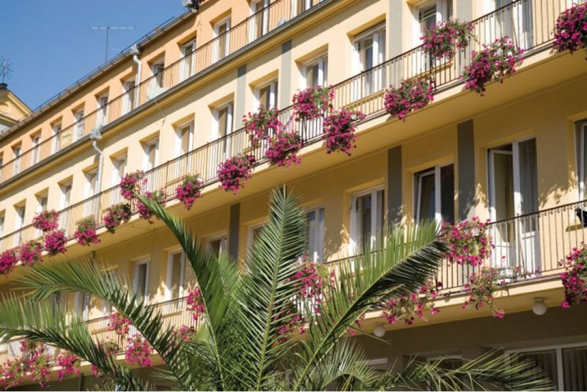 Dom Zdrojowy to budynek czteropiętrowy położony w centrum uzdrowiska. We wszystkich pokojach w łazienkach do kąpieli wykorzystujemy wodę termalną.