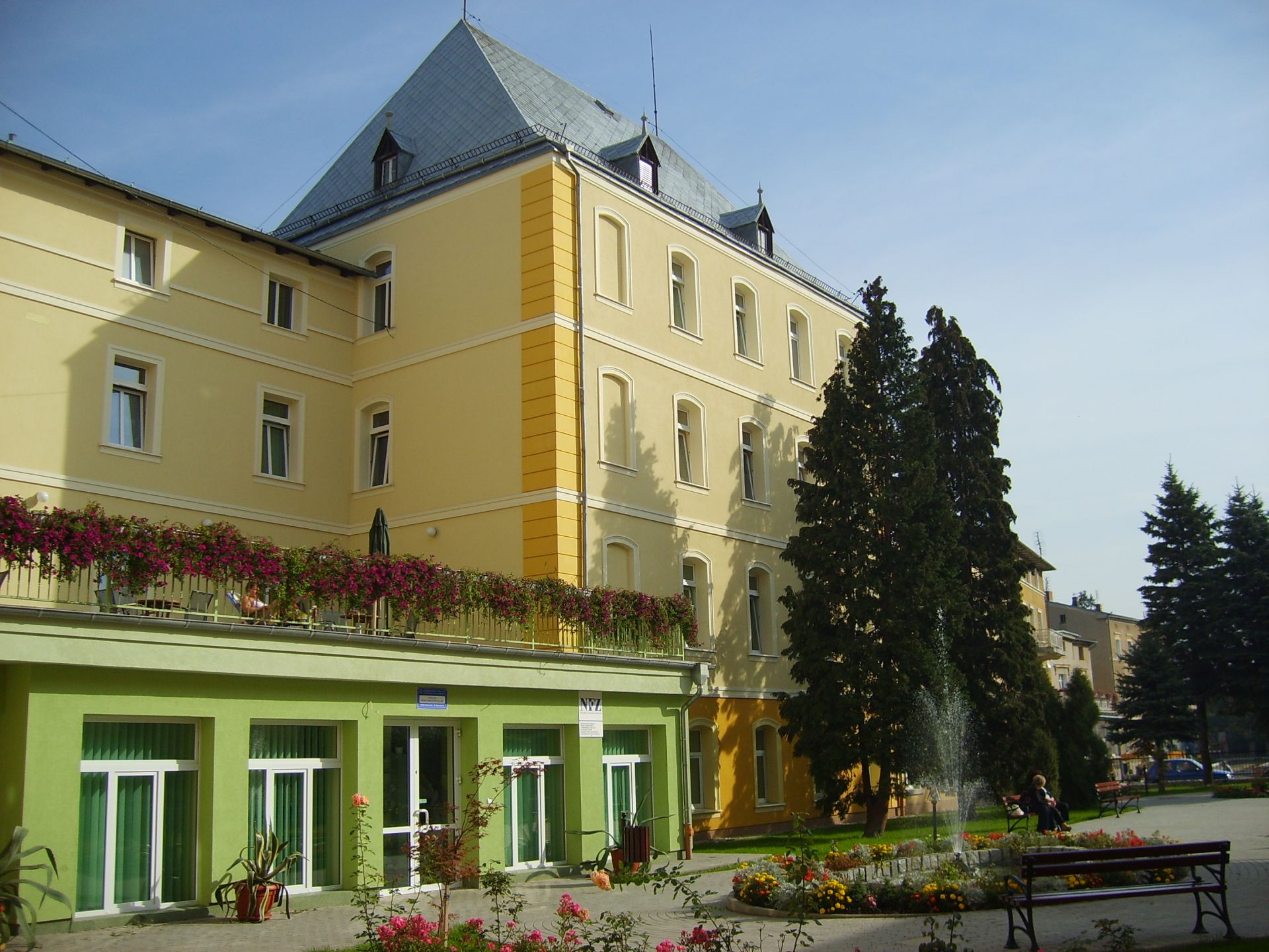 Dom Zdrojowy to budynek czteropiętrowy położony w centrum uzdrowiska. We wszystkich pokojach w łazienkach do kąpieli wykorzystujemy wodę termalną.