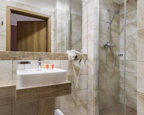Dodatkowo w hotelu uzdrowiskowym znajdzie się strefa wellness z kompleksem saun. Budynek posiada 4 kondygnacje i wyposażony jest w windę. Pokoje Komfort posiadają: chłodziarkę, TV-SAT, Wi-Fi, szlafroki. We wszystkich pokojach w łazienkach do kąpieli wykorzystujemy wodę termalną.