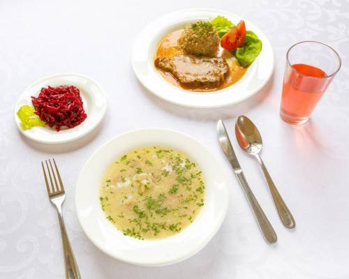 Również osoby, które nie wykupiły noclegów w naszych obiektach, mogą korzystać z wyżywienia w naszych restauracjach. Codziennie zapraszamy na pyszny "obiad dnia". Nasze tanie i smaczne obiady słynne są w całej Jeleniej Górze.
